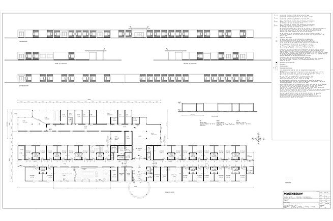 Het zorggebouw is in goede conditie en bestaat uit 113 units. Voorzien van alle benodigde sanitair en met een oppervlakte van 2.034 m2 is het gebouw te gebruiken voor verschillende doeleinden. De units kunnen ook in een andere opstelling worden geplaatst, afhankelijk van het beschikbare bouwoppervlak en de wensen van de opdrachtgever. De gevels zijn voorzien van houten geveldelen in kleur.