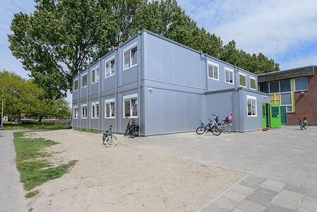 De gebouwen van Dutch Cabin Group kunnen meerdere levens hebben, zo ook dit gebouw dat voorheen het Drentse Roelof van Echten college uitbreidde en nu een twee verdiepingen tellende basisschool is. Doet dat af aan de kwaliteit? Absoluut niet. Bertus Jonkeren, verkoop buitendienst Directbouw, vertelt: "Wij kennen de kwaliteit van onze units. Daardoor weten we dat ze zeker dertig jaar mee kunnen, ook wanneer ze in de tussentijd worden verplaatst en voor verschillende doeleinden worden gebruikt."