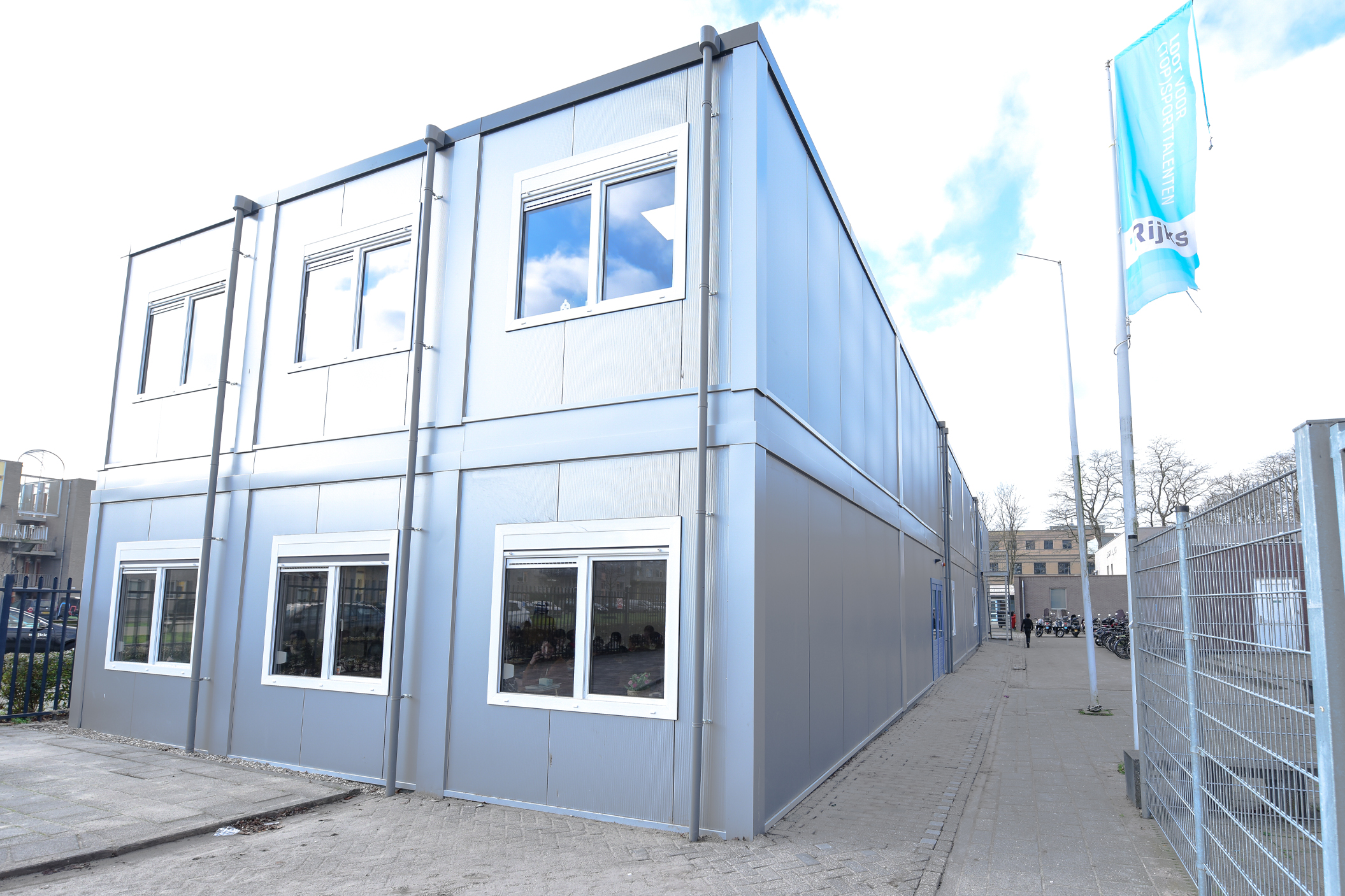 Tot dat gebouw er staat, is er wel een tijdelijk schoolgebouw nodig. Directbouw voldeed aan alle eisen en levert snel, dus de keuze was snel gemaakt. Het tijdelijke gebouw bestaat uit 36 units. Er zijn 8 lokalen waarin les gegeven kan worden. Het gebouw zal 5 jaar blijven staan.